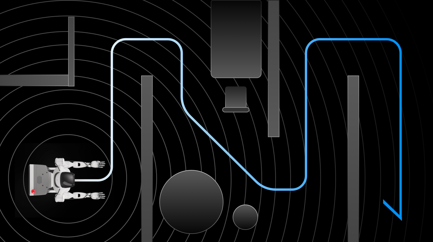 底盘支持原地转向,可通过 95% 的工厂通道,可跨越 20mm 障碍